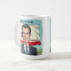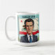 Gavin Newsom para presidente em 2028. Uma caneca de café política patriótica, vermelha, branca e azul com uma caricatura de desenho animado de Gavin.