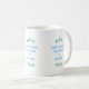 Gemas aquamarinas azuis leves na caneca branca. O texto pode ser personalizado.