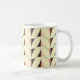 Geometric pattern with overlapping beige, peach, and brown triangles, accented by teal circles. The design forms a zigzag, creating a retro vibe.