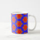 Um atraente padrão geométrico predominantemente em tons de vermelho e azul, mas também com amarelo, ciano, roxo e verde.