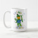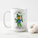 Cute winter mug featuring a whimsical ginger cat going skiing . Perfect for hot cocoa , coffee or tea .
