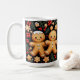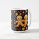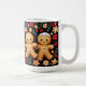 "This heartwarming design features two cheerful gingerbread figures holding hands, decorated with bright white icing and button details. They are nestled in a beautiful arrangement of dark pine boughs, vibrant red berries, and assorted star and snowflake cookies, all set against a rich, dark background for high contrast. This cozy and traditional graphic is ideal for Christmas pajamas or socks, kitchen towels and oven mitts, holiday cards and stationery, cushions, or any product intended to evoke the warmth and togetherness of holiday baking and cheer."