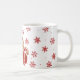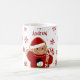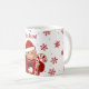 Warm up your mornings with this festive gingerbread man Christmas mug! Featuring a smiling gingerbread cookie in a red puffy sweater with a snowman design, Santa hat, and candy cane, this cheerful design is surrounded by snowflakes on a red background. Perfect for sipping hot cocoa, coffee, or tea during the holidays. A cozy and charming Christmas gift for cookie lovers, kids, or anyone who loves festive mugs.
