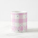 Caneca De Café Gingham de xadrez branco rosa-floral Elegante