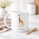 Uma incrível caneca de café, esta design apresenta uma girafa ouro com seu nome escrito embaixo em letra cursiva. Personalize o seu hoje!