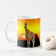 Em um fundo amarelo ouro está uma Girafa em uma design de arte dimensional.