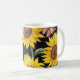 Caneca De Café Girassóis, borboletas, mosaico preto