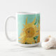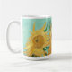 Girassóis (1889) Vincent van Gogh. A vida ainda é azul. Um buquê brilhante de flores de girassol fica em um vaso. Reprodução de famosas imagens de arte no dominio público.