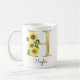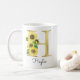Monograma com letra dourada e girassóis caneca inicial, presente perfeito de Natal ou aniversário para uma filha, mãe, tia ou irmã. Personalizado com monograma a letra H e um nome. Outras letras disponíveis na minha loja.