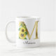 Caneca De Café Girassol dourado Monograma Floral Feminino Inicial