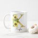 Monograma com letras douradas e girassóis caneca inicial, presente perfeito de Natal ou aniversário para uma filha, mãe, tia ou irmã. Personalizado com o monograma da letra K e um nome. Outras letras disponíveis na minha loja.