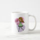 Cute mini art of a whimsical girl with long flowing yellow hair and wearing a green dress and striped stockings. She is holding a beautiful bunch of red roses in her outstretched hands. Originally made as digital art, An adorable piece of artwork to bring a smile with your morning coffee.
