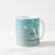 Girly Aqua Blue Silver Ombre Glitter Monograma Nome Coffee Mug