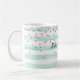 Caneca De Café Girly Mint White Stripes Rosa Confetti Corações