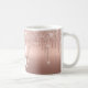 Caneca Personalizada Elegante e Glam Rosa Dourado com Brilho, Efeito Ombre e Monograma em Script. Estes desenhos apresentam seu primeiro nome em uma linda fonte manuscrita com caligrafia ou tipografia de rabo de andorinha e monograma inicial em folha metálica falsa rosa dourada com brilho glamouroso e borda com glitter rosa dourado gotejando. São fáceis de personalizar. Ótimo presente feminino e elegante para aquecimento de casa, também para aniversário, dia das mães, casamento, festa de 16 anos, chá de noiva, chá de bebê, para festa de formatura e é para a garota que ama coisas únicas e estilosas com brilho.