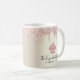Apresentem-se aos vossos clientes, com esta caneca de café elegante, sofisticada, simples e moderna. Um cupcake brilhante, cor-de-rosa, rosa, tipografia escrita à mão com script e gotas de brilho sobrepõem um fundo fino de ouro-champanhe metálico. Personalize com seu nome comercial de cheio ou outras informações. Faz uma declaração chic, profissional e na moda enquanto relaxa com sua bebida favorita. Cartões de visitas correspondentes também estão disponíveis: https://www.zazzle.com/pink_cupcake_glitter_drips_bakery_pastry_chef_gold_business_card-256910740300251841 e https://www.zazzle.com/pink_cupcake_glitter_drips_pastry_chef_bakery_gold_square_business_card-256811945187345013 Basta digitar seu nome comercial ou outras informações na seção "Personalizar este Modelo" e você pode personalizar facilmente esta caneca de café. Por favor, me mande mensagens com quaisquer perguntas ou solicitações.