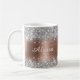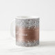 Brilhante cintilante brilhante cintilante clássico na borda superior, sobre uma folha metálica laminada de rosa dourado falso ou de aço inoxidável em forma de papel fotovoltaico. Personalize o script de estilo manuscrito moderno para criar sua própria caneca. Você pode adicionar uma inicial de monograma para criar uma combinação inicial de nome. Esta fina lamparina prateada falsa e folha de ouro de rosa de metal escovado serão perfeitas como presente personalizado para ela.