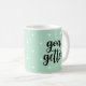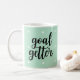Esta caneca na moda apresenta um fundo verde-menta moderno com bolinhas brancas, e a frase "gol getter" na tipografia moderna.