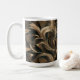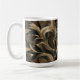 This striking mug features layered golden botanical forms flowing across a deep black background, blending metallic warmth with sculpted elegance. The intricate leaf textures and curved shapes create depth and dimension, giving the design a refined, gallery-inspired feel.