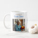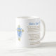 A beautiful coffee mug memorial keepsake for funerals, celebration of life gatherings or to send to friends and family in honor of someone they lost. You can add a photo in the personalized area. The back has a religious poem for comfort to remind you your loved one is in God's arms now. The accent colors used are blue and gold. There is a golden cross with blue flowers on it too.
