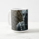 Artistic mug featuring a grayscale female portrait framed by a golden geometric grid pattern, symbolizing elegance, balance, and creative energy