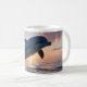 Bebê golfinho saltando para o mar refletido no céu ensolarado