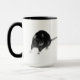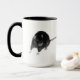 Uma caneca de café com estilo gótico com ratos pretos nela.