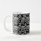 Um design floral abstrato preto e branco, que se assemelha a padrões vitorianos de têxteis e papel de parede, cria uma bela caneca com uma estética Gótico.