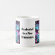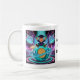 Esta caneca de café de graduação em criptografia apresenta um formando enfeitado em um boné e vestido, sentado no topo de um globo interligado com a intrincada teia da moeda digital. Com um sentido determinado de realização, simboliza a fusão da educação tradicional com o inovador reino da cripto.