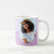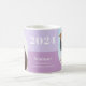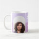 Uma caneca de graduação de fotos com duas fotos em um design de arco. A caneca tem um esquema claro de cor roxa e branca. Basta adicionar sua foto e informações, adicionar esta caneca ao seu carrinho e manter essa grande conquista. Arch Purple Photos Graduation Coffee Mug Graduation class de 2024 Holidayday Design | ©Melissa Patton - Designer