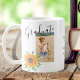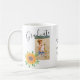 Esta Mug de Keepsasael de Graduação floral é decorada com girassóis e folhagem. Substitua a foto e personalize-a com seu nome, escola e ano. Para editar ainda mais, use a Ferramenta Design para alterar a fonte, o tamanho da fonte ou a cor. Porque nós criamos a nossa trabalho de arte, você não encontrará esta imagem exata de outros designers. Original Watercolor © Michele Davies.