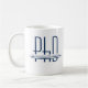 Uma caneca de café graduada em doutorado com um nome azul e design de grau. Simplesmente personalize o nome, adicione esta caneca ao seu carrinho e aproveite a próxima xícara de café. Nome Blue PhD Graduação Café Mug Holidayday Design | ©Melissa Patton - Designer