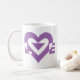 Um design de logotipo gráfico, feito sob medida. AMOR em roxo.