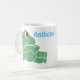 Crie um presente não esquecível quando adicionar um nome a esta caneca de café. Ele apresenta uma ilustração bonita do sapo estilo retrô. O sapo verde tem manchas azuis e amarelas. Seu nome ou outro texto aparece em letras azuis brilhantes. O gráfico sapo aparece em ambos os lados da caneca.