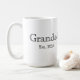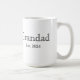 Celebrate a new chapter with this classic Grandad Est. custom coffee mug featuring a clean serif font and minimalist design. This high-quality Grandparents Day gift, is also a perfect pregnancy announcement surprise, or just a wonderful gift for when the kids go to visit. Just add the year or years that Dad became a Grandad.