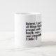 Jumbo Alguns dias, uma xícara de joe de tamanho normal simplesmente não vai funcionar. Quando precisar de uma dose extra de cafeína, pegue a sua caneca de café extragrande de Zazzle. Vai acomodar um cheio de 20 onças de Venti. Perfeito para sopa, cereal, sorvete ou chili também! Esta caneca gigante apresenta uma alça em forma de C para um corte confortável. Dimensões: Altura: 4,5" Diâmetro: 3,9" Capacidade: 20 onças de micro-ondas e lava-louças Forte, de cerâmica Cumprir ou exceder os requisitos do FDA para o Designer de Segurança de comidas e bebidas Dica: Para garantir o impressão de alta qualidade, note que a área de design personalizável deste produto mede 4" alto x 10,5" de largura