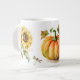 Pumpkin e girassóis com duas libélulas. Caneca jumbo, excelente para sopas também.