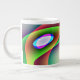 Esta caneca espetacular apresenta um padrão multicolorido de cores psíquicas brilhantes ao redor de uma estrutura central em forma de ovo. Parece uma fantasia de uma espaçonave alienígena pronta para sequestrar uma terra.