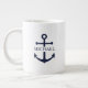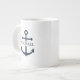 Caneca De Café Grande Âncora Azul Marinho Náutico Nome Personalizado