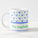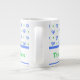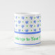 Uma caneca de café ou sopa bonito de tamanho Jumbo para personalizar, com um padrão de arcos e pontos em azul e verde sobre fundo branco de um design pintado à mão por Judy Adamson. A coordenação do pote de chá e do lançador também está disponível.