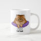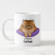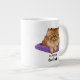 Um gato persa laranja em uma almofada roxa está mostrando a sua atitude.