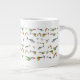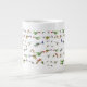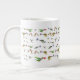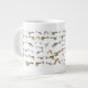 Múltiplas imagens de beija-flores em um fundo branco puro embrulham esta enorme caneca.