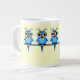 Pássaros azuis coloridos, engraçados e fofinhos em um tweet com um pássaro de cabeça para baixo. Mugs de café de amante de pássaros. roupa e presentes únicos e divertidos para observadores de pássaros, ornitólogos e amantes de pássaros.