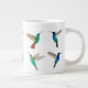 Caneca colorida para amantes de beija-flores apresentando várias espécies de beija-flores tropicais, tais como um beija-flor-garganta, apphire de cauda-Ouro, beija-flores-esplêndidas, beija-flores, coroinha e beija-flores. Imagens tiradas de pinturas de aquarela originais por Christiane Dobbins.