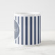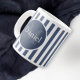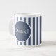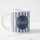 Uma caneca personalizada, com listras azuis masculinas, com nomes personalizados para personalizar... projetada em cores azuis e brancas... esta caneca gigante é moderna e na moda.. e é fácil de personalizar.. tenha sua bebida em estilo com os produtos de visto caseiro Equal To Angels / Ricaso