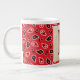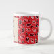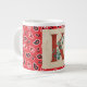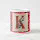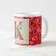 Na moda jumbo caneca apresenta madeira vermelha farna preenchida Carta K, acentuada por um tronco aquoso de folhas de eucalipto, e uma divertida borda vermelha paisley bandana impressão.