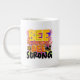 Jumbo Alguns dias, uma xícara de joe de tamanho normal simplesmente não vai funcionar. Quando precisar de uma dose extra de cafeína, pegue a sua caneca de café extragrande de Zazzle. Vai acomodar um cheio de 20 onças de Venti. Perfeito para sopa, cereal, sorvete ou chili também! Esta caneca gigante apresenta uma alça em forma de C para um corte confortável. Dimensões: Altura: 4,5" Diâmetro: 3,9" Capacidade: 20 onças de micro-ondas e lava-louças Forte, de cerâmica Cumpre ou excede os requisitos do FDA para a segurança das comidas e bebidas Impressos a pedido em Reno, NV Designer Dica: Para garantir o impressão de mais alta qualidade, note que a área de design personalizável deste produto mede 4" alto x 10,5".