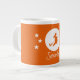 Faça um feitiço com esta charmosa, mas simples, "Bewitching Halloween Jumbo Mug" em laranja, apresentando uma lua de cheio e estrelas atrás de uma bruxa voadora. Esta caneca cativante seria perfeita para café bebendo ou chocolate quente numa noite de Dia das Bruxas. Fácil de personalizar, basta adicionar seu próprio texto nos campos fornecidos. As fontes e as cores do texto podem ser alteradas clicando-se no botão "Personalizar".