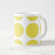 Bonita e moderna Grande Bolinhas Jumbo Mug. Este design apresenta bolinhas circulares grandes de tamanho excessivo em amarelo e branco. O texto pode ser adicionado a esta design para lhe dar um toque pessoal.