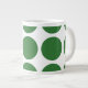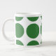 Bonita e moderna Grande Bolinhas Jumbo Mug. Este design apresenta bolinhas circulares grandes de tamanho excessivo em verde e branco. O texto pode ser adicionado a esta design para lhe dar um toque pessoal.